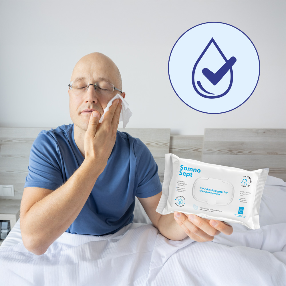 SomnoSept CPAP reinigingsdoekjes zijn de oplossing voor dit dilemma: je masker is weer schoon in slechts 30 seconden. In plaats van een waterbad voor te bereiden, veeg je gewoon een paar keer en je bent klaar.